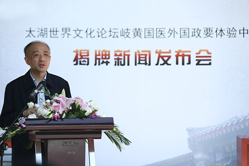 太湖世界文化論壇秘書長鄭傳焮在揭牌新聞發布會上致辭