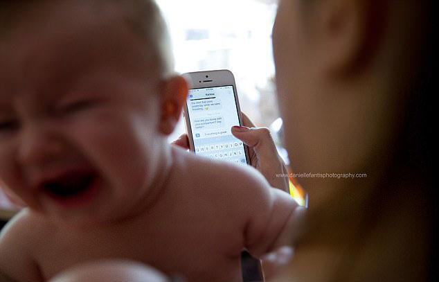 凱西•迪文森索(Kathy DiVincenzo)在產(chǎn)后患上了憂郁癥、焦慮癥和強(qiáng)迫癥。很多母親在得了憂郁癥之后會(huì)消沉墮怠,喪失了生活的動(dòng)力和信心,但凱西卻十分努力地讓自己重新回歸到以往幸福的生活中,擺脫憂郁癥帶來(lái)的陰霾。她的朋友丹妮爾(Danielle)為她拍攝了一組家庭生活照:一張是她陪著女兒玩耍,努力微笑的照片,一張是她蹙眉嘟嘴哄嬰兒的照片,還有一張是她抱著嬰兒,玩手機(jī)的照片。