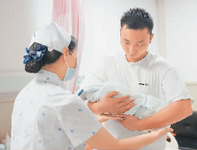 圖為9月13日,岑鞏縣婦幼保健院護(hù)士為新生兒家長講授帶嬰兒技巧。