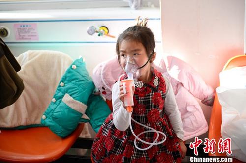 12月13日,小朋友在醫(yī)院做霧化治療。中新社記者劉文華攝
