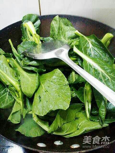 將菜心下鍋翻炒片刻,加入適量食用鹽。