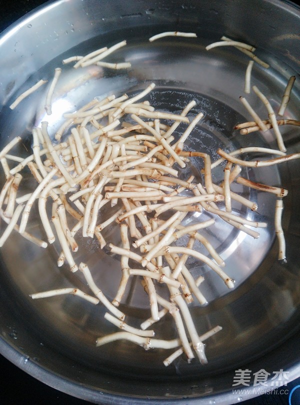 瘦肉洗凈切片,放入油、鹽、料酒攪拌均勻,腌制片刻