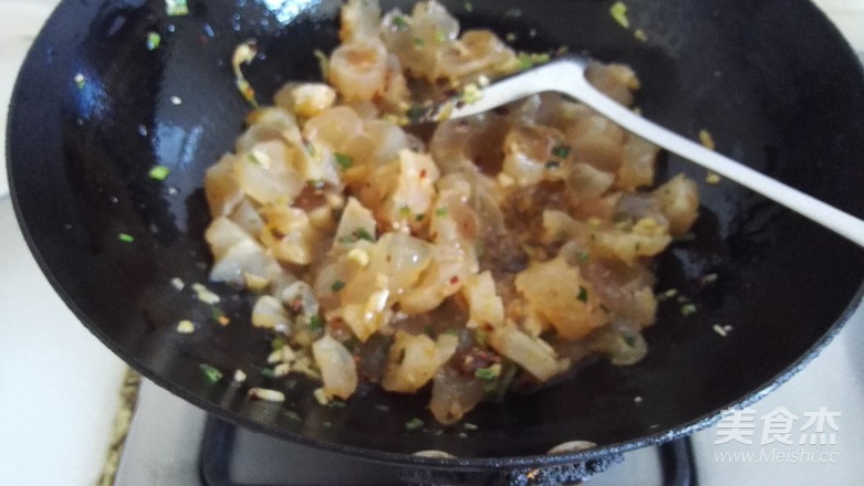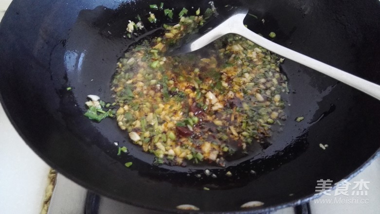 熱油鍋,放入蔥姜蒜小火炒出香味,再加入老干媽醬炒勻