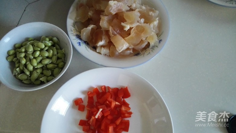 鍋里燒開水,放入毛豆子焯水3分鐘左右撈出