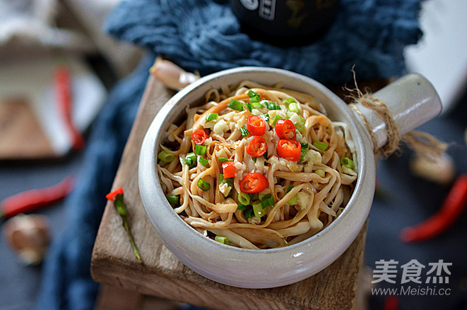 13.最后把熱油澆到蔥花、蒜末上炸出香味,食用時拌勻即可