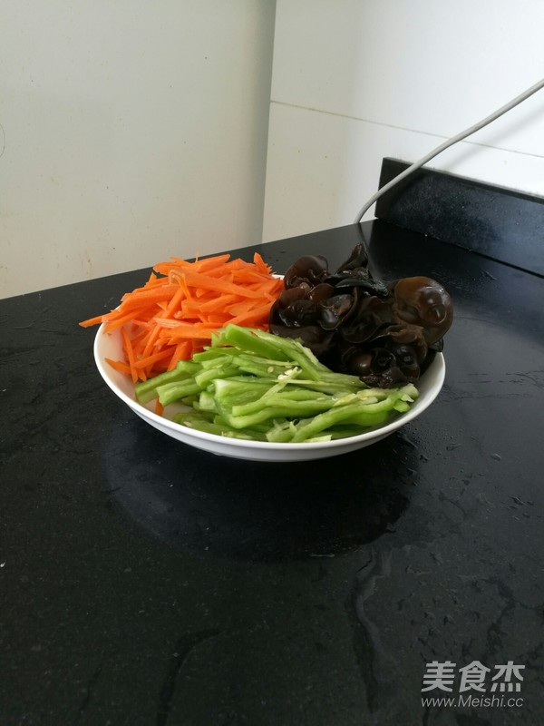 準備材料,木耳(水發),胡蘿卜,青椒切絲