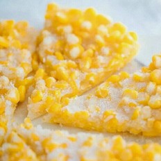 水淀粉倒入玉米粒上,煎至無水狀態,再倒入沒過食材的食用油炸3-5分鐘,炸至玉米粒金黃酥脆就可以出鍋了