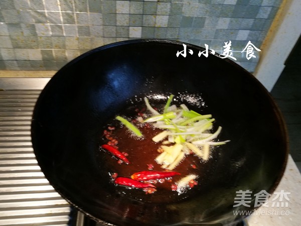 鍋熱后,放入花椒和干辣椒,放油燒熱