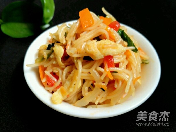 面條放進去炒幾下,倒入雞蛋翻炒幾下,放點鹽就可以出鍋了。
