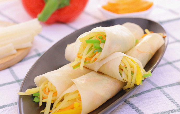 取出一張春餅皮,放入炒好的菜絲。