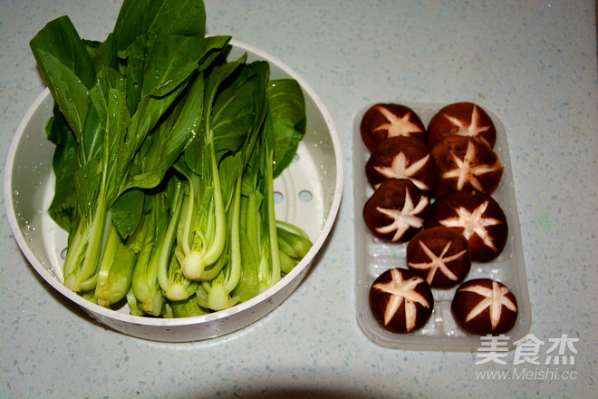1.準(zhǔn)備食材清洗干凈,將香菇去蒂在頂部切花刀狀,油菜中間切開(kāi)。