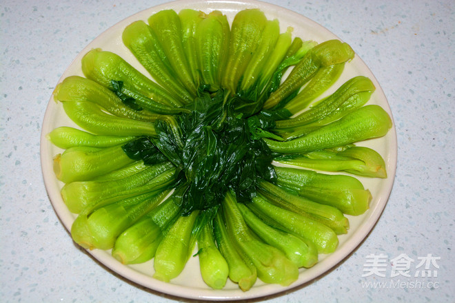 3.油菜煮熟后撈出擺在盤(pán)子四周。