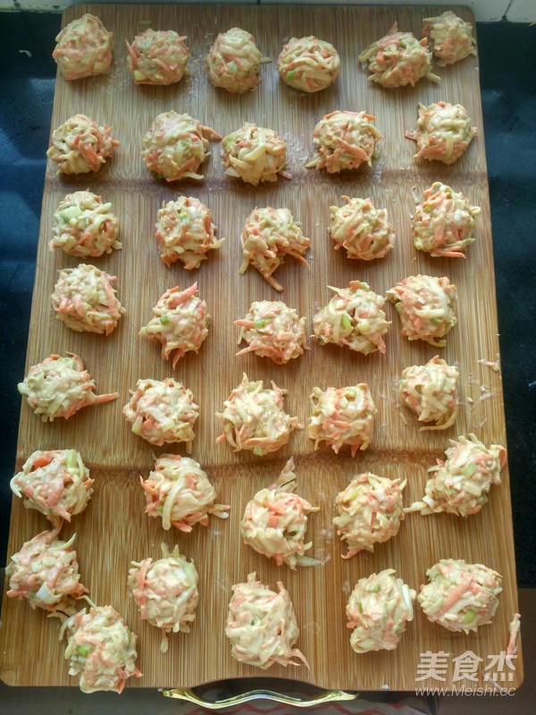 胡蘿卜,土豆,去皮洗凈擦細(xì)絲狀。