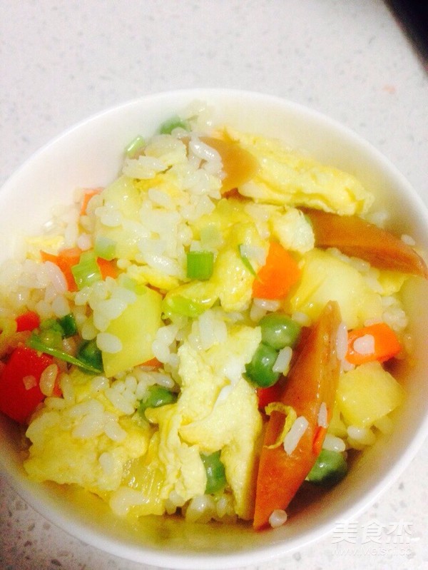 豌豆胡蘿卜火腿菠蘿炒飯的做法 - 家常豌豆胡蘿卜火腿菠蘿炒飯的做法非常簡單易學。如果豌豆胡蘿卜火腿菠蘿炒飯怎么做好吃,豌豆胡蘿卜火腿菠蘿炒飯的家常做法如何做一直困擾著你,易網健康菜譜提供的圖文豌豆胡蘿卜火腿菠蘿炒飯的家常做法大全,用最短的時間讓你學會豌豆胡蘿卜火腿菠蘿炒飯的做法