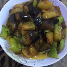 鍋里放適量油,將茄子和土豆炸一下,茄子體積變小,土豆變黃即可,尖椒也略炸一下