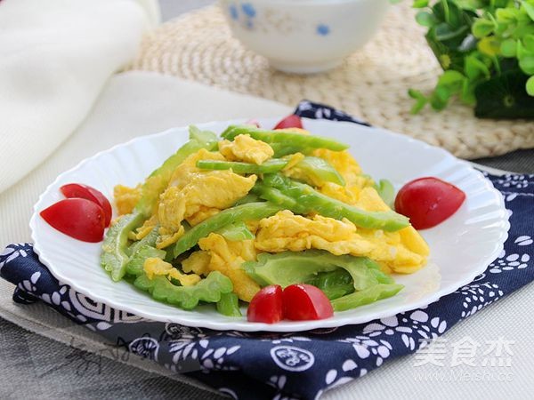 加入處理后的苦瓜,食用鹽炒幾下即可出鍋。