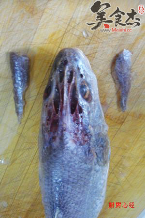 1、撕鐵皮:黃花魚(yú)的腥氣,主要是來(lái)自于魚(yú)頭上面的魚(yú)皮,由于它很腥,所以叫他鐵皮。它位于魚(yú)眼的上方二側(cè),在入鍋前的處理上,要將它撕去。其實(shí)要是自已吃,不是宴客的話,我愛(ài)人主張,干脆就不要魚(yú)頭了,也不要美觀了,更省事。