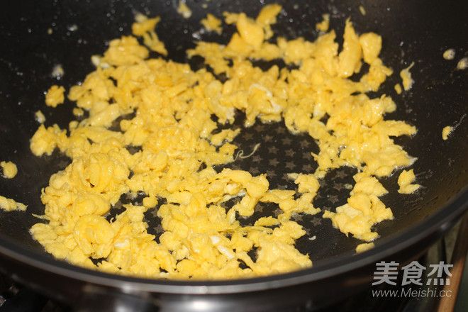 11.起油鍋,倒入雞蛋黃液,快速用筷子切開,待用