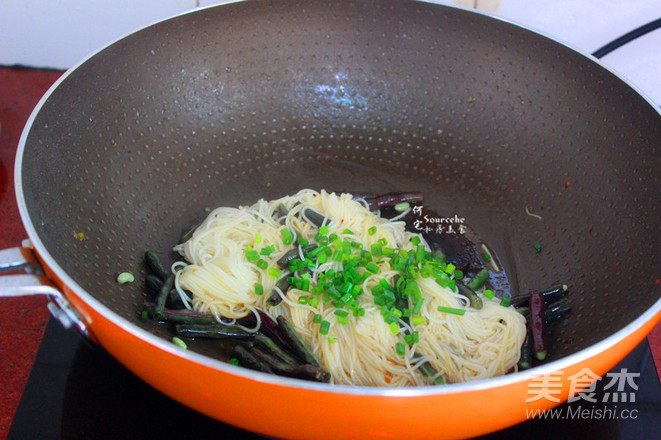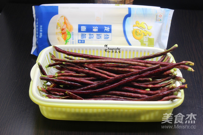 準備食材:龍須掛面、豆角、香蔥等食材;
